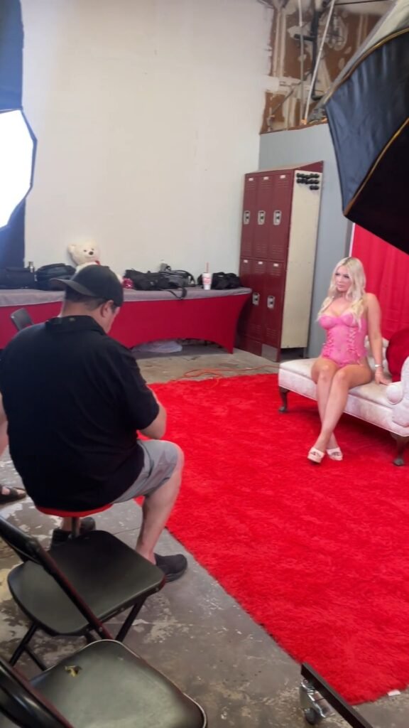 Before there were red sets, lingerie, and skin in perfect light, Amelia Rae — a curvy, bubbly blonde — was fighting her way back from Austin. She’d been there the night before, got up before sunrise, and drove straight through a mess of thunderstorms just to make call time. That kind of effort tells you everything: she came to work, and she came to deliver.